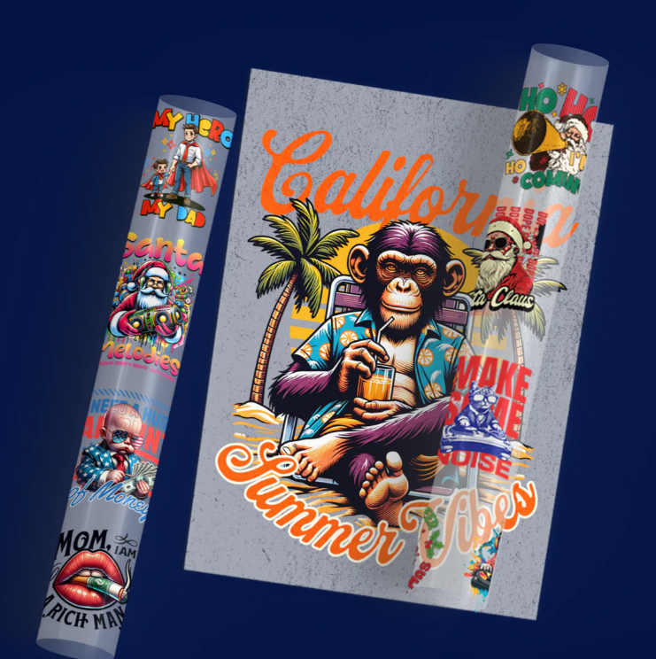 Τα UV DTF αυτοκόλλητα είναι η πιο σύγχρονη και ανθεκτική λύση για εκτύπωση σε κάθε λείο αντικείμενο. Τυπώνονται με τεχνολογία UV απευθείας σε ειδικό φιλμ και στη συνέχεια εφαρμόζονται εύκολα με τη μέθοδο Direct to Film (DTF), χωρίς θερμότητα ή πιεστήρια.